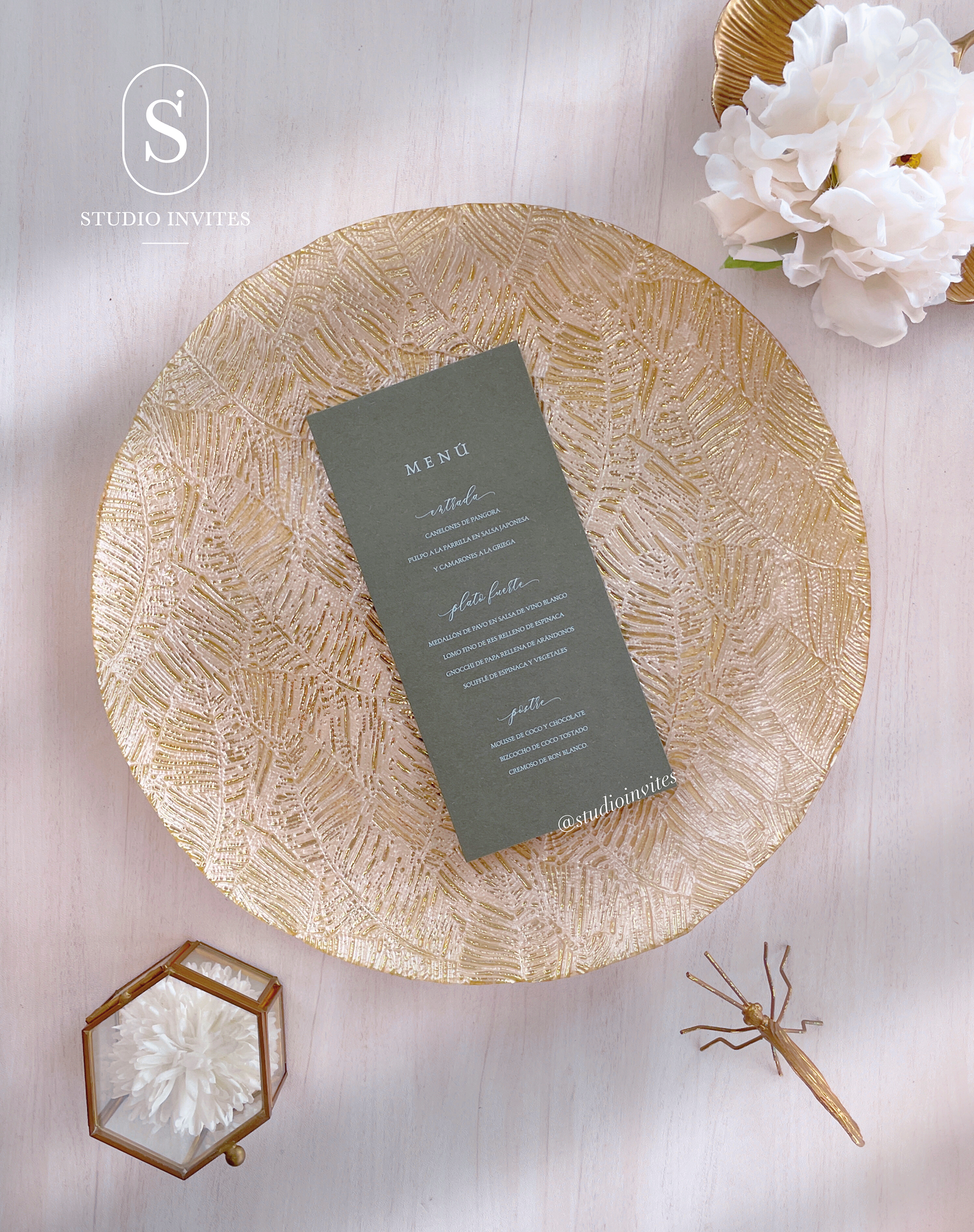 Menú minimalista con hojal dorado